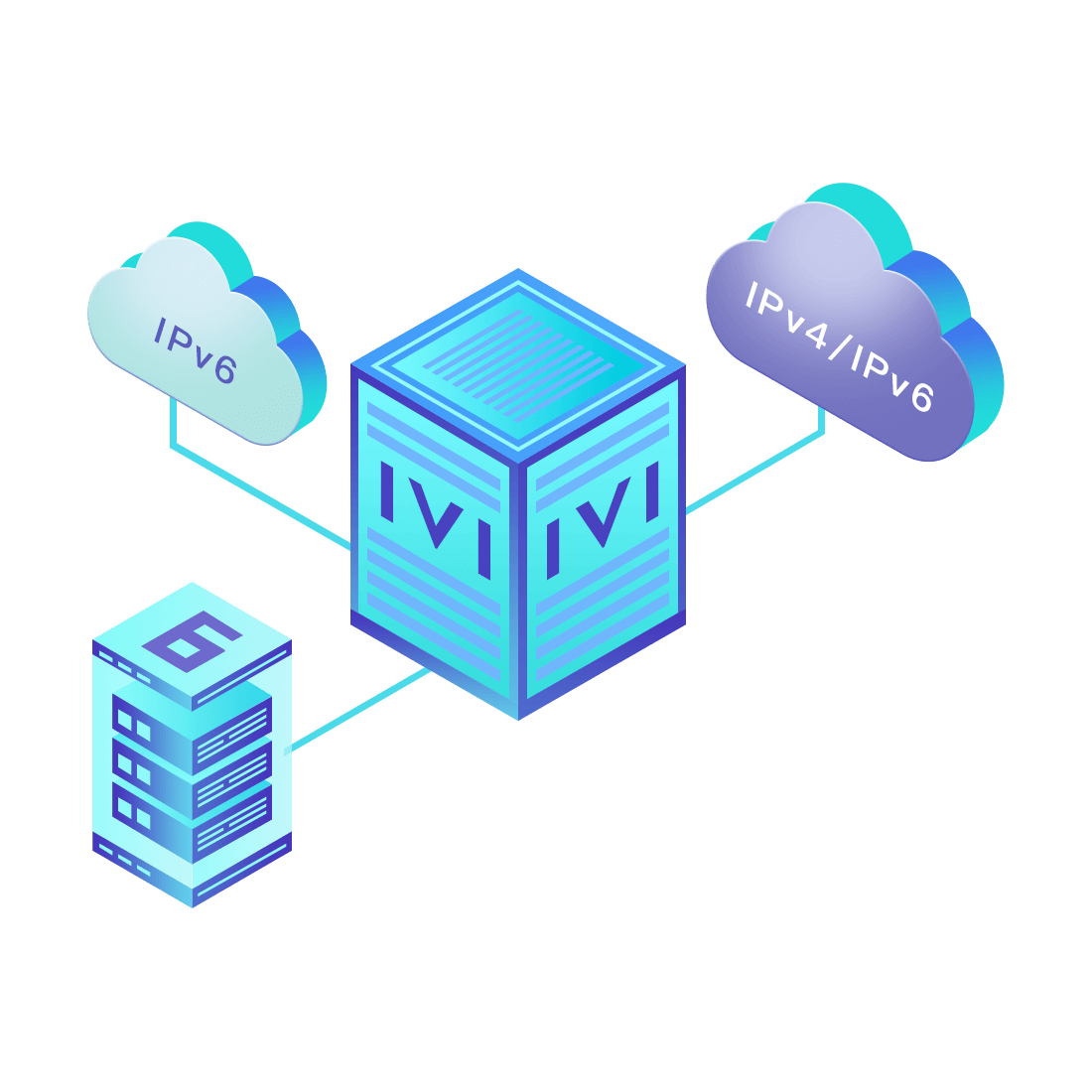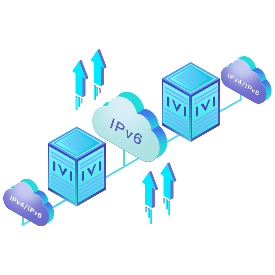 對正在進行IPv6整體升級規(guī)劃的運營商,應用IPv6升級方案2.5,通過IVI無狀態(tài)翻譯技術和純IPv6接入網(wǎng)絡,為雙??蛻舳撕碗p棧服務器提供連通服務。